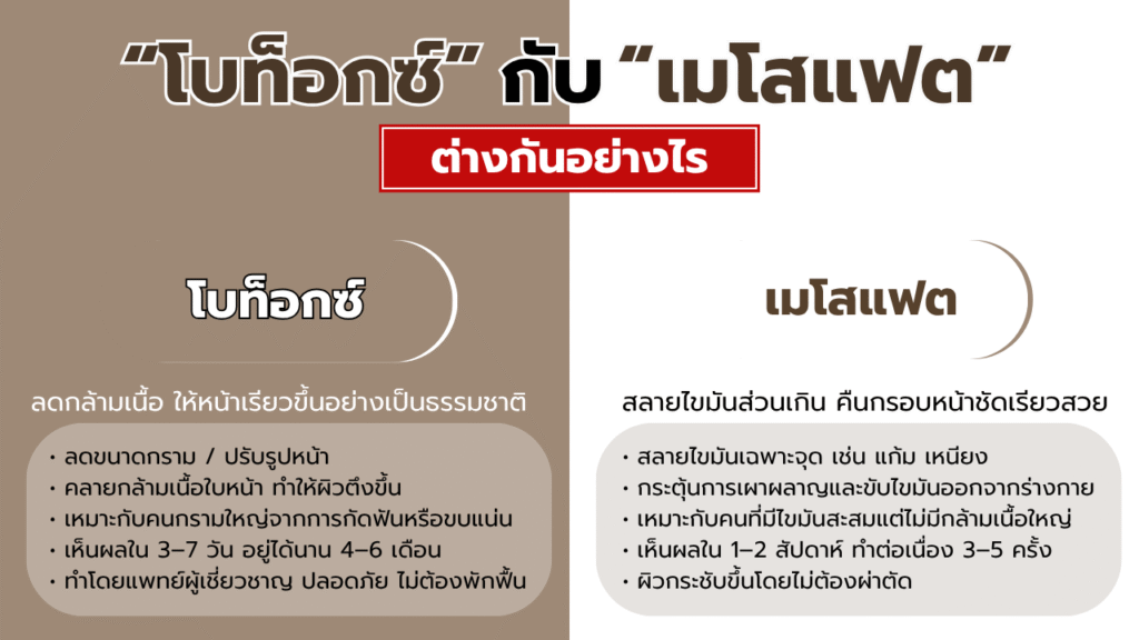 ตารางเปรียบเทียบโบท็อกซ์ vs เมโสแฟต