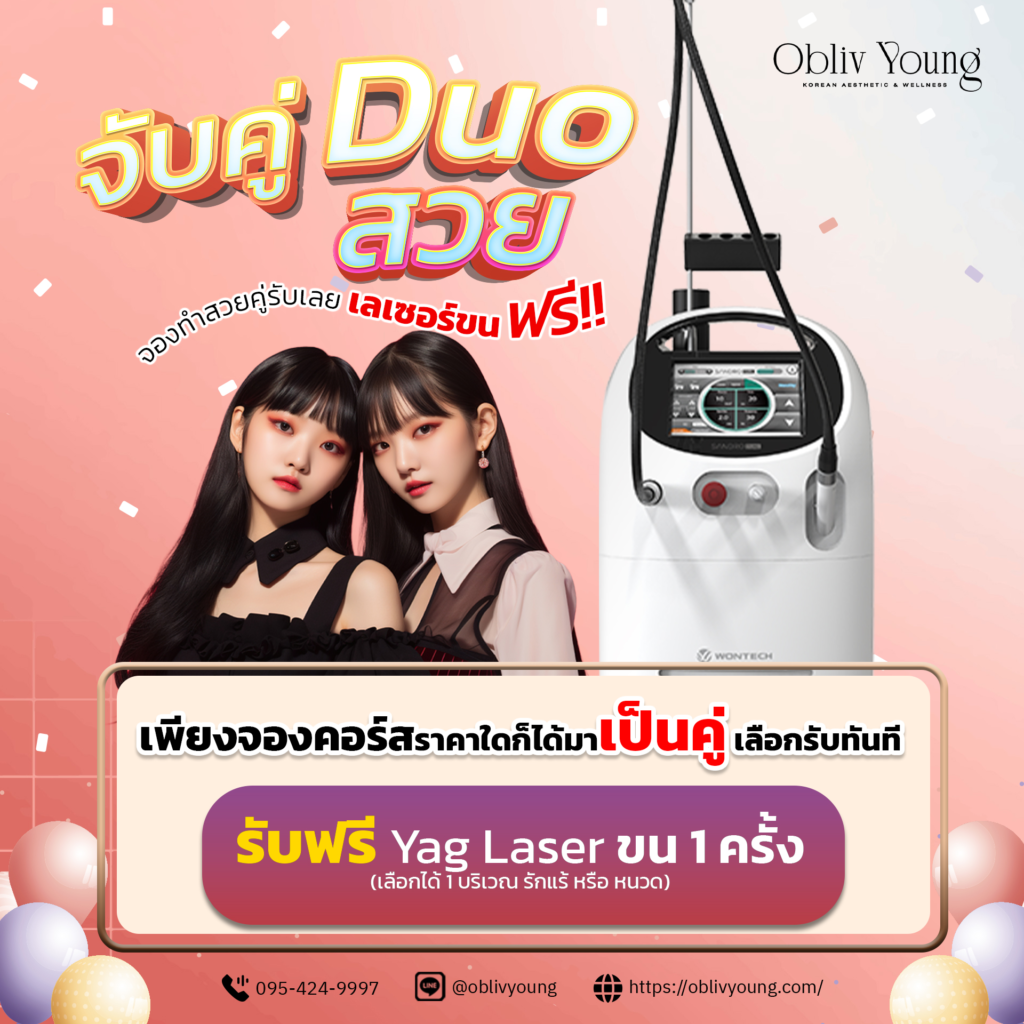 ที่ Obliv Young เราเชื่อว่าผลลัพธ์ที่ดีเกิดจากความเหมาะสมของเครื่องเลเซอร์ การปรับค่าพลังงานเฉพาะบุคคล และการดูแลผิวหลังทำอย่างถูกต้อง เราใช้ Sandro Dual YAG Laser ซึ่งเหมาะกับทุกสีผิวรวมถึงผิวสีเข้ม และมีแพทย์ประเมินก่อนทุกครั้ง การกำจัดขนที่ดีไม่ใช่เพียงการทำให้ขนหาย แต่คือการดูแลให้ผิวปลอดภัย ลดความเสี่ยงระยะยาว และได้ผลลัพธ์ที่คุ้มค่าที่สุดในภาพรวม