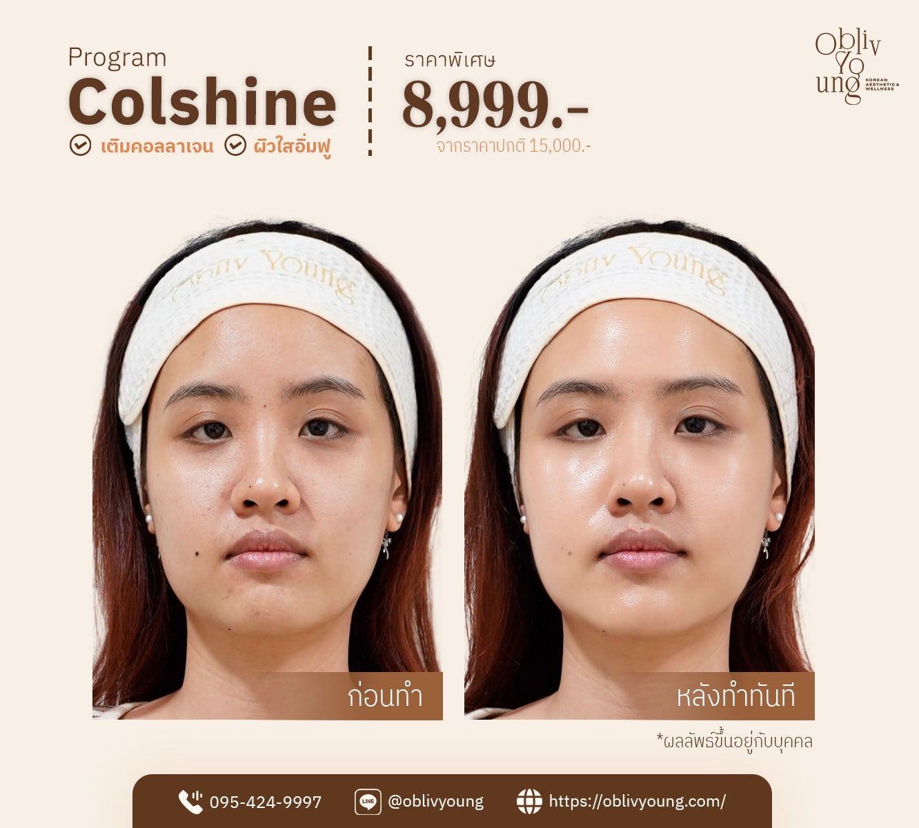 Colshine เป็นเทคโนโลยีฟื้นฟูผิวที่ให้ผลลัพธ์ทั้งในด้านความชุ่มชื้น ความกระชับ และการลดเลือนริ้วรอยในคราวเดียว แตกต่างจากการฉีดคอลลาเจนทั่วไปเพราะช่วยซ่อมแซมผิวในระดับเซลล์ เหมาะกับผู้ที่มีผิวแห้ง ขาดน้ำ มีริ้วรอยละเอียด หรือผิวเสียจากสิวและแสงแดด อีกทั้งยังปลอดภัยสูง ผ่านการรับรองมาตรฐานสากล มีผลข้างเคียงต่ำและใช้ได้แม้ในผิวบอบบาง